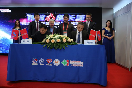 中国心血管健康联盟主席葛均波院士、副主席霍勇教授、秘书长方唯一教授、执行秘书长曾文明先生和上海明士亚洲药业总裁周俊杰先生共同出席签署仪式。